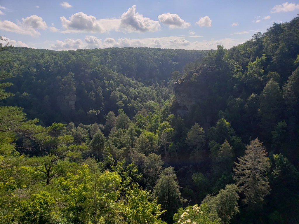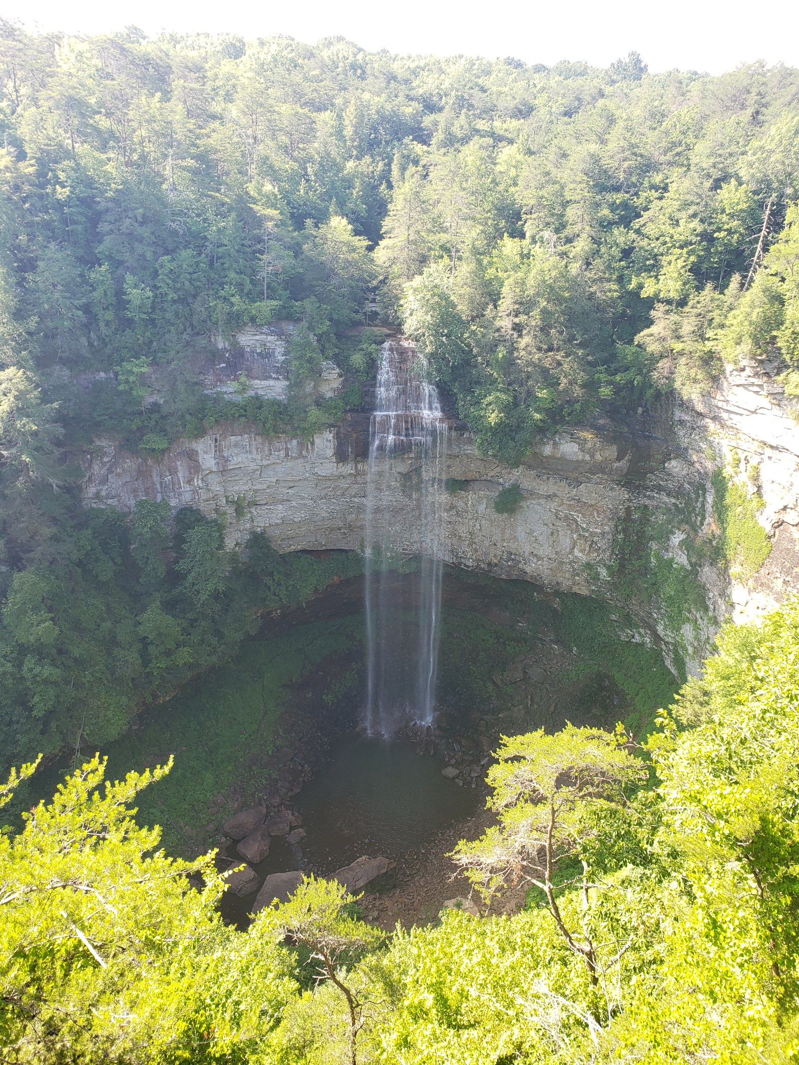 So for breakfast, I ate almond butter straight and headed to visit the main attraction, Fall Creek Falls. I learned that the stand of Hemlock and Yellow Poplar trees in this area are the last virgin trees, the last old growth, East of the Mississippi. As I stared out at the 256 ft waterfall (for comparison, Multnomah Falls is about 620 ft), I tried to take that in.