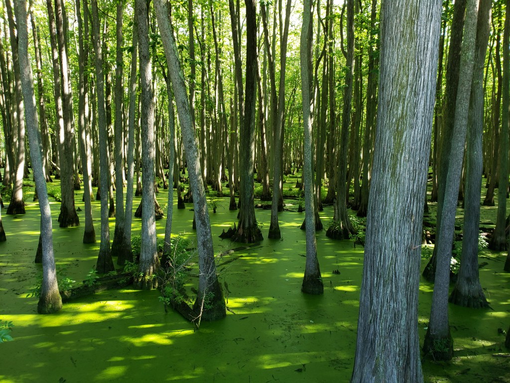 From there, route 146 out of Golconda is narrow, fast, and dangerous. Large portions had no berm, lots of 18 wheelers, lots of rolling hills, and very few places to stop. There were occasional Trail of Tears route markers but no points of interest in Illinois. The only thing remarkable was unexpectedly, the Grantsberg swamp. Yes, there was a full blown swamp in Illinois. No imagine passing through that with 300 other horse led wagons.